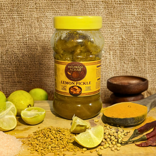 Since 1938, Brijwasi Achar has been perfecting the art of homemade pickles. Our Lemon Pickle is a zesty blend of sun-ripened lemons and hand-ground spices, made without any preservatives. Bursting with tangy, bold flavors, it's a timeless taste of tradition in every bite.